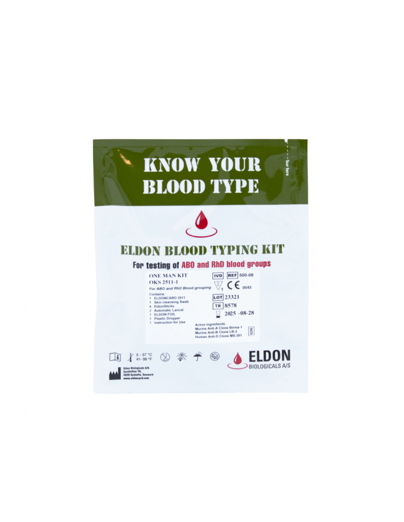 Rankinis testas, skirtas nustatyti A, B ir RhD antigenų buvimą ar nebuvimą ant vieno asmens eritrocitų pagal ELDONCARD 2511. Prieš perpylimą gauta ABO grupė turi būti patvirtinta atvirkštiniu tyrimu, o donoro kraujas, kurio RhD neigiamas, turi būti ištirtas dėl silpnų RhD antigenų jautresniais metodais